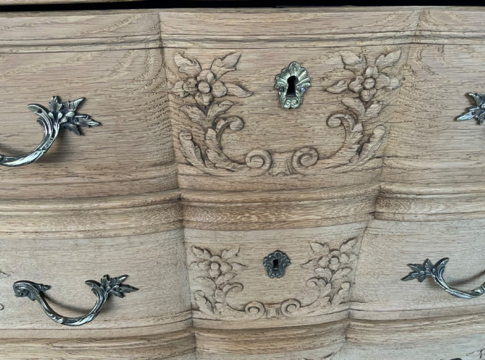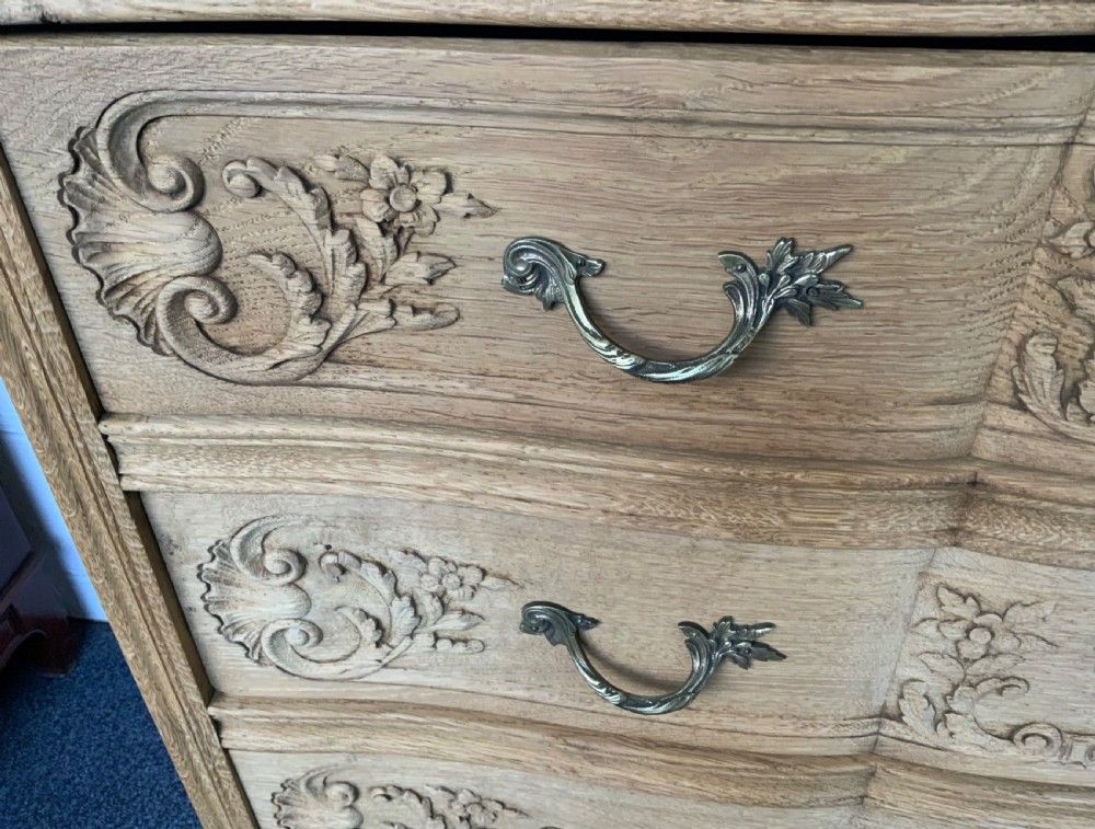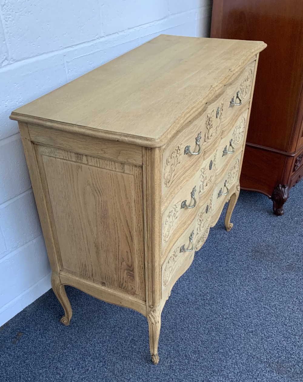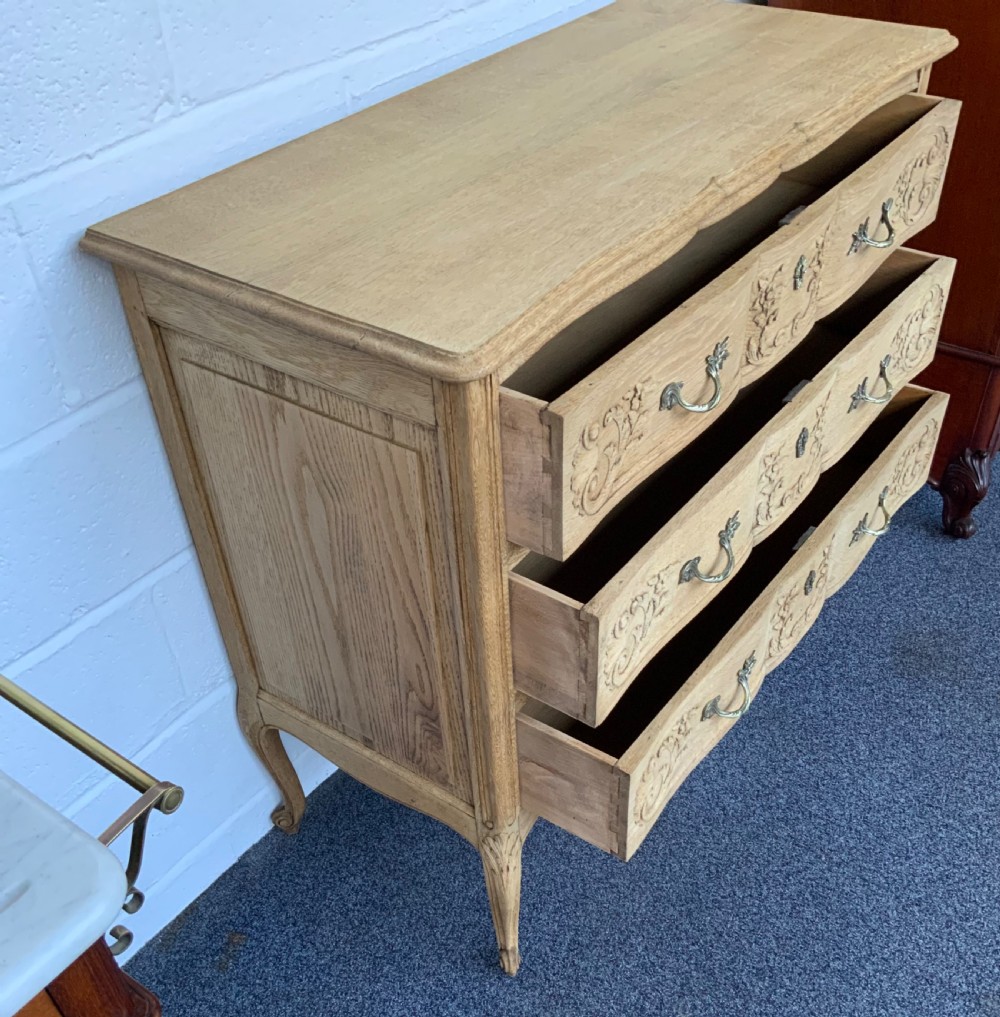 BLEACHED OAK FRENCH CARVED CHEST OF DRAWERS