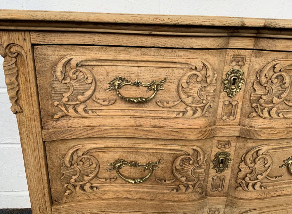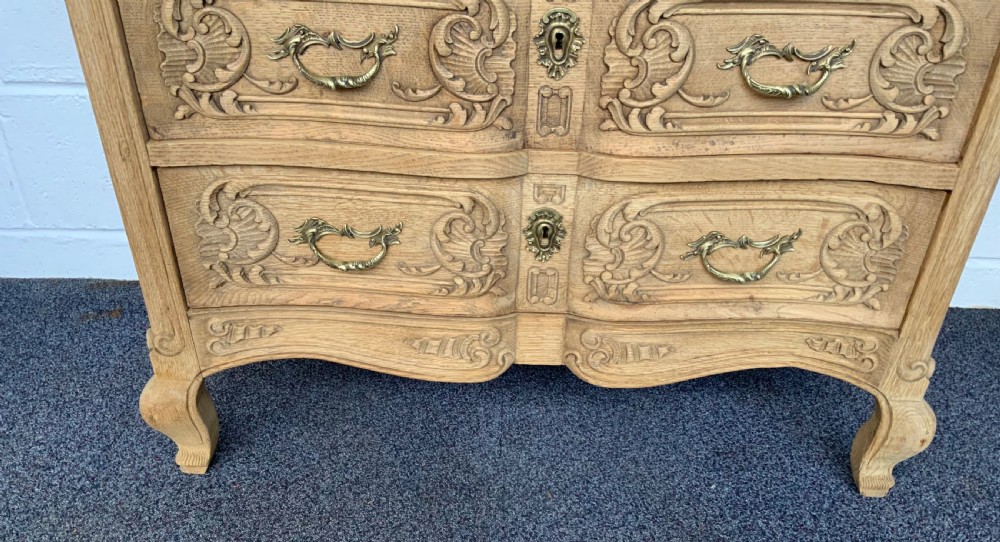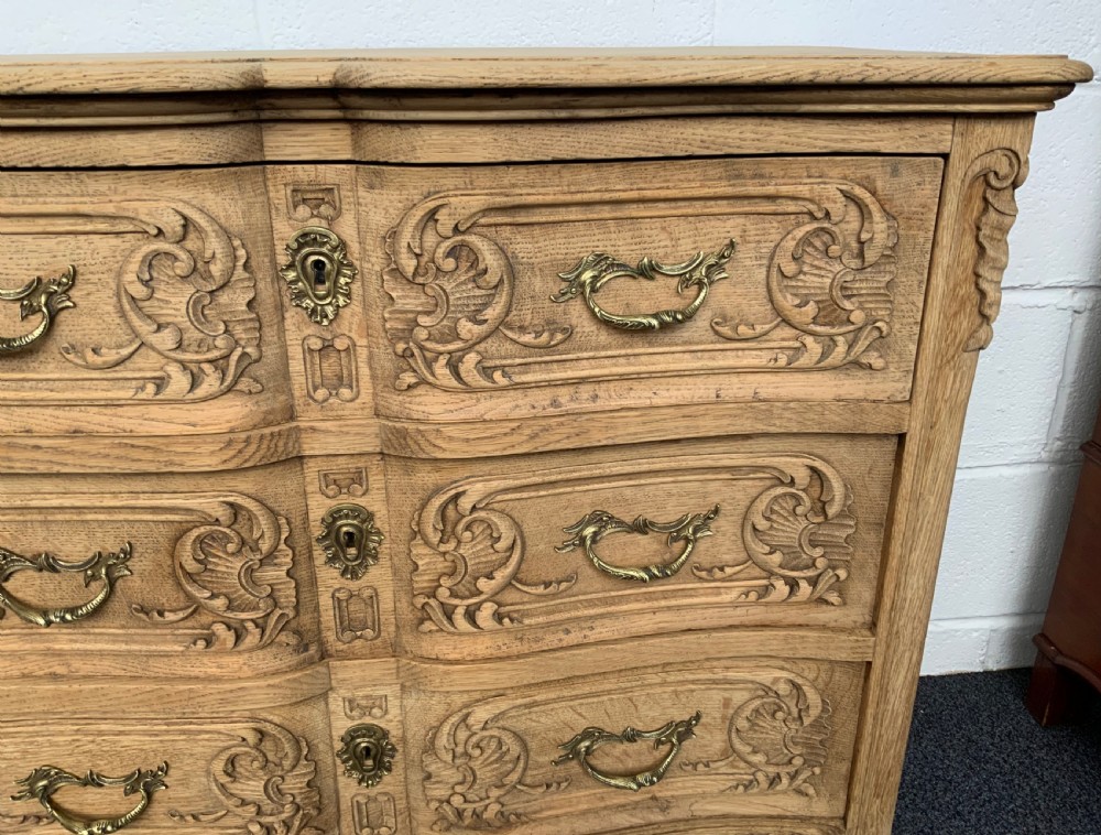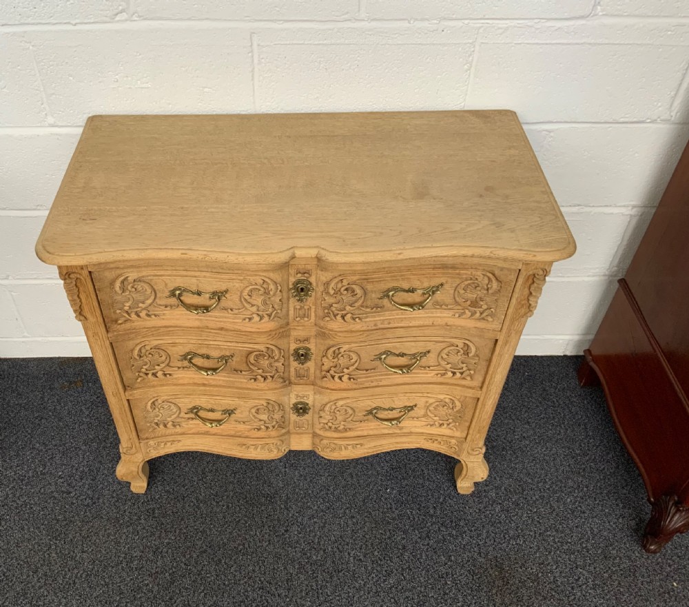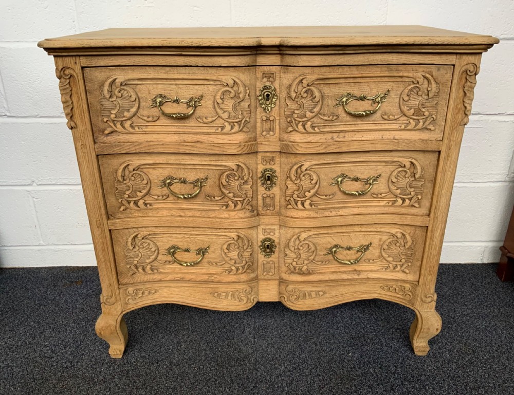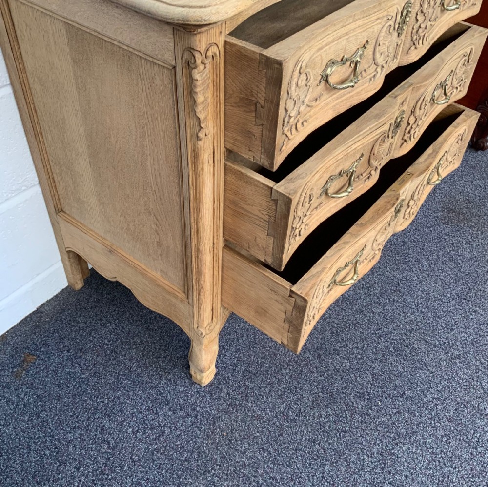 BLEACHED CARVED OAK FRENCH CHEST OF DRAWERS