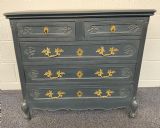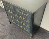 PAINTED FRENCH CARVED OAK CHEST OF DRAWERS