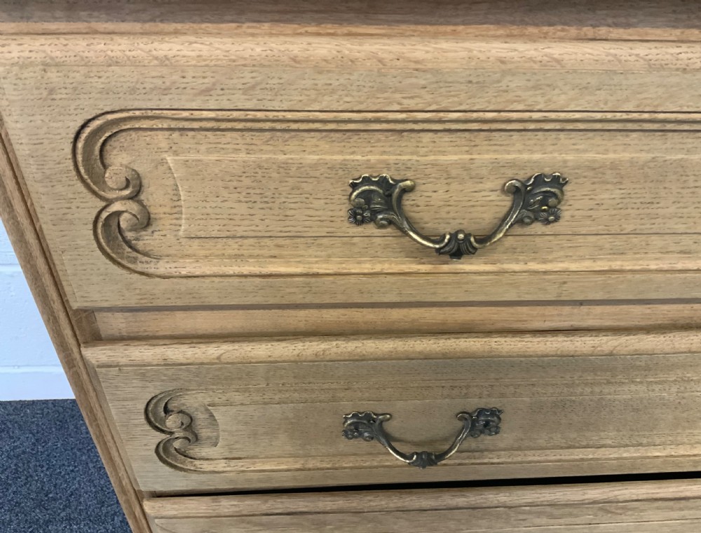 This lovely french carved oak chest of drawers is offered in very good condition.
