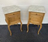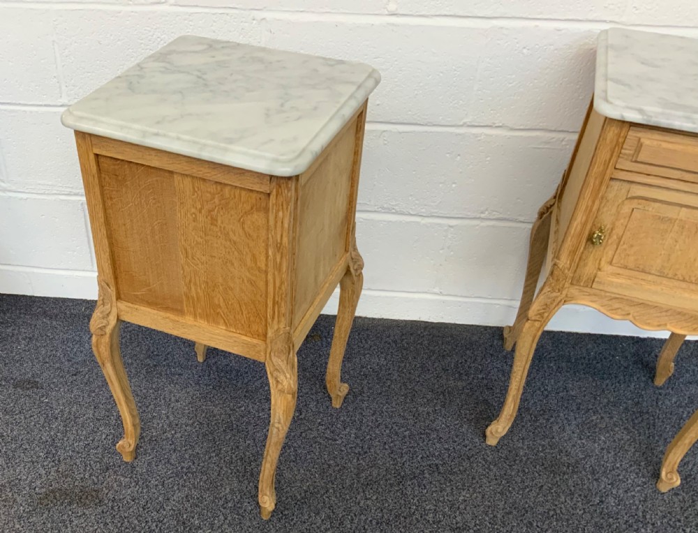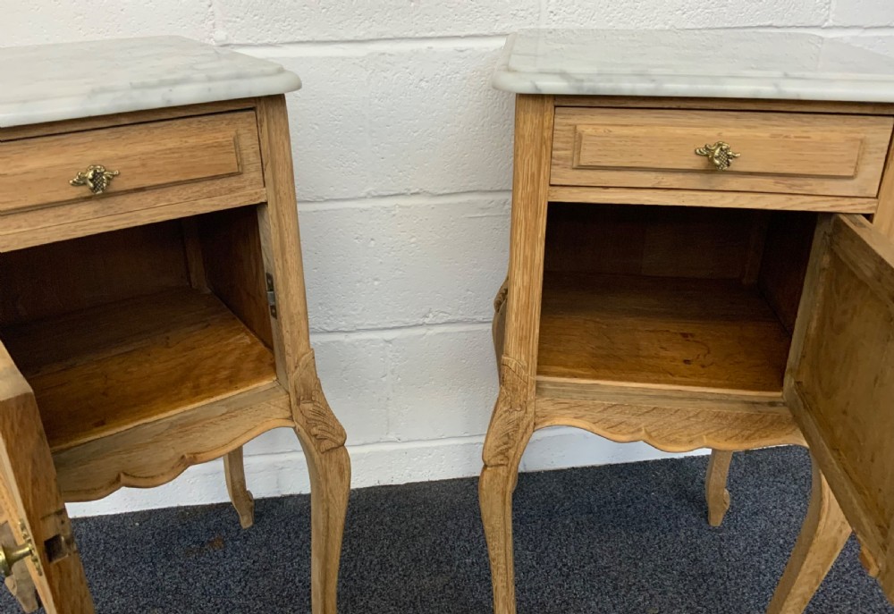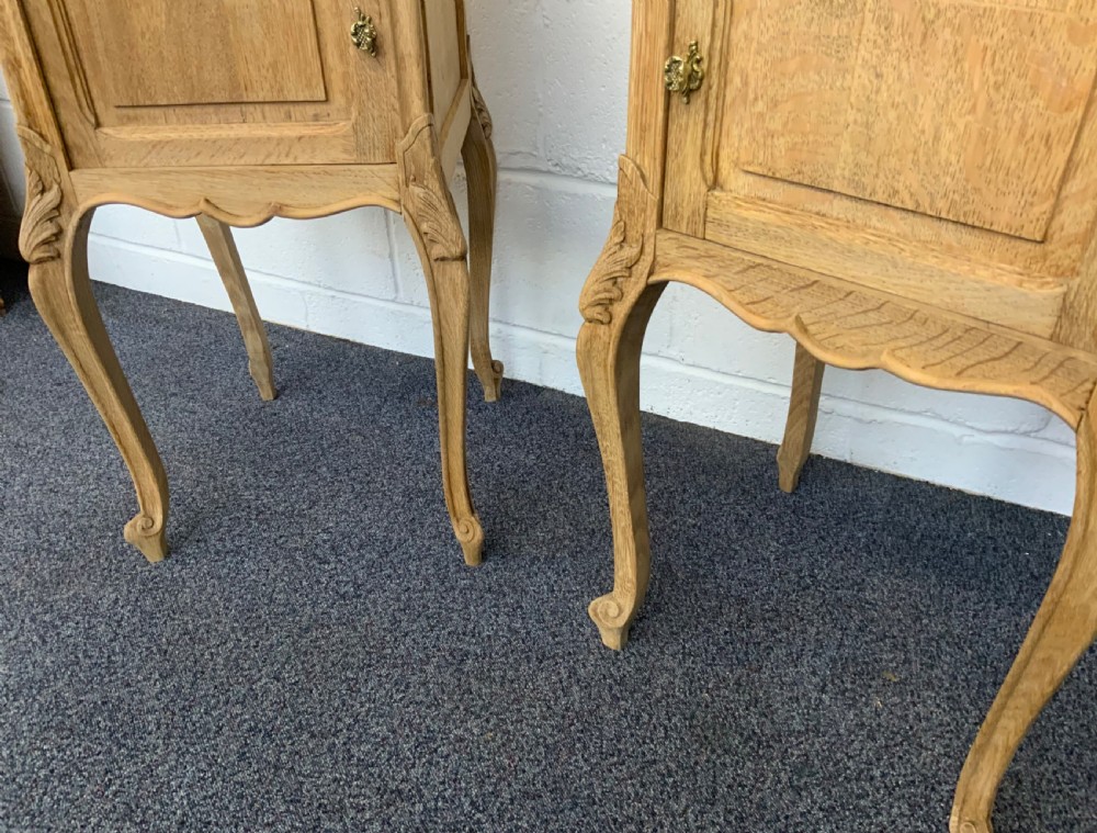 CARVED OAK BLEACHED FRENCH BEDSIDE CABINETS