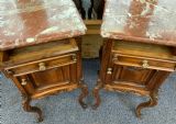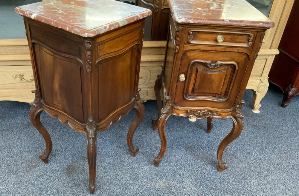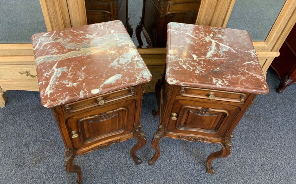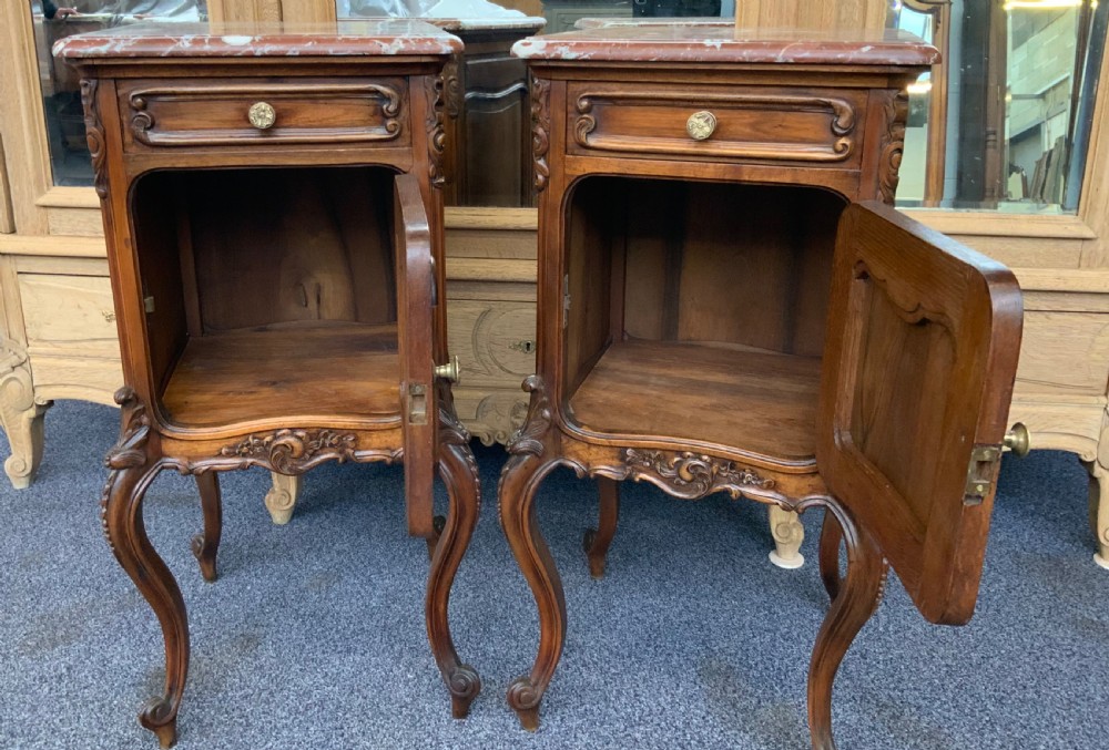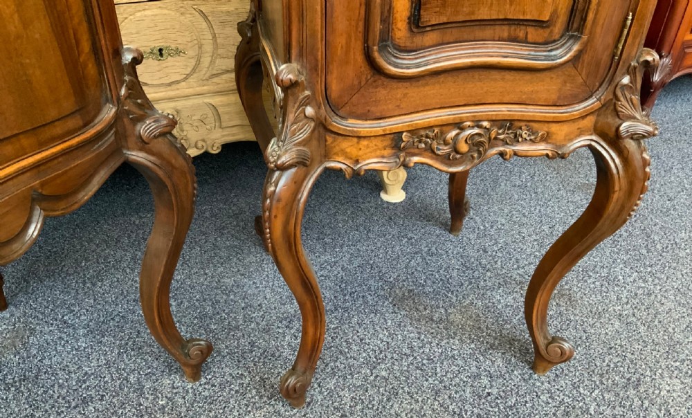 pair of carved walnut french bedside cabinets