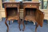 PAIR OF CARVED WALNUT FRENCH BEDSIDE CABINETS