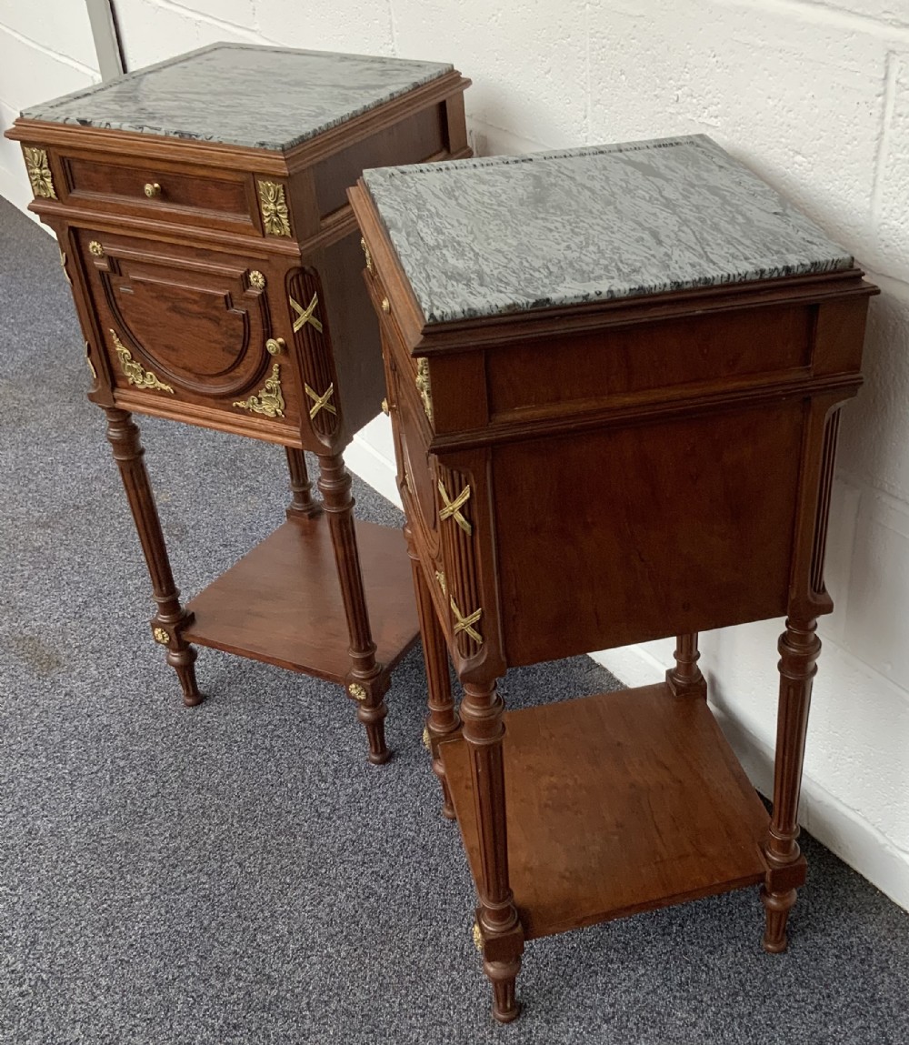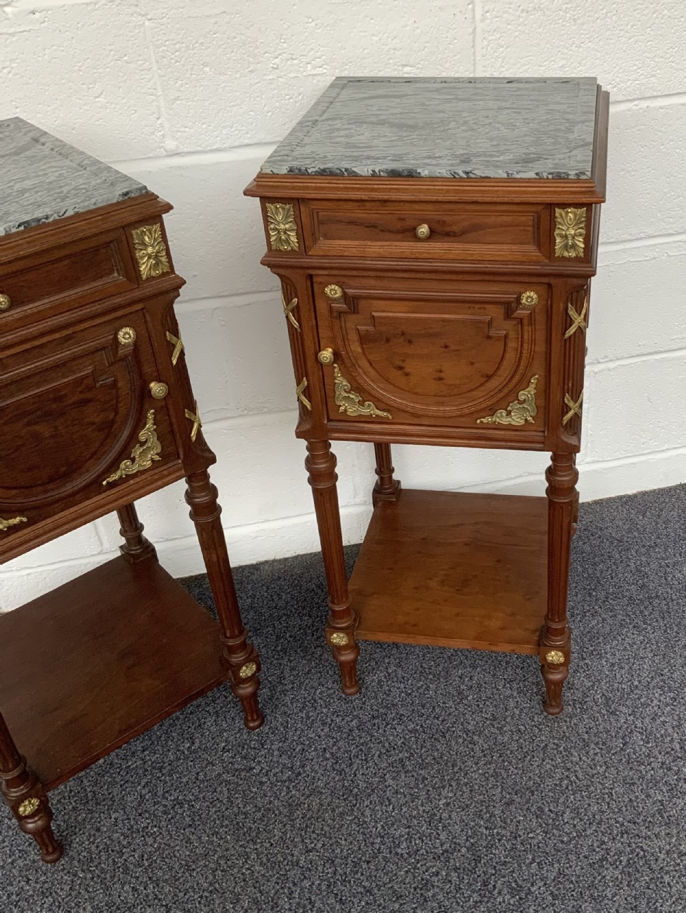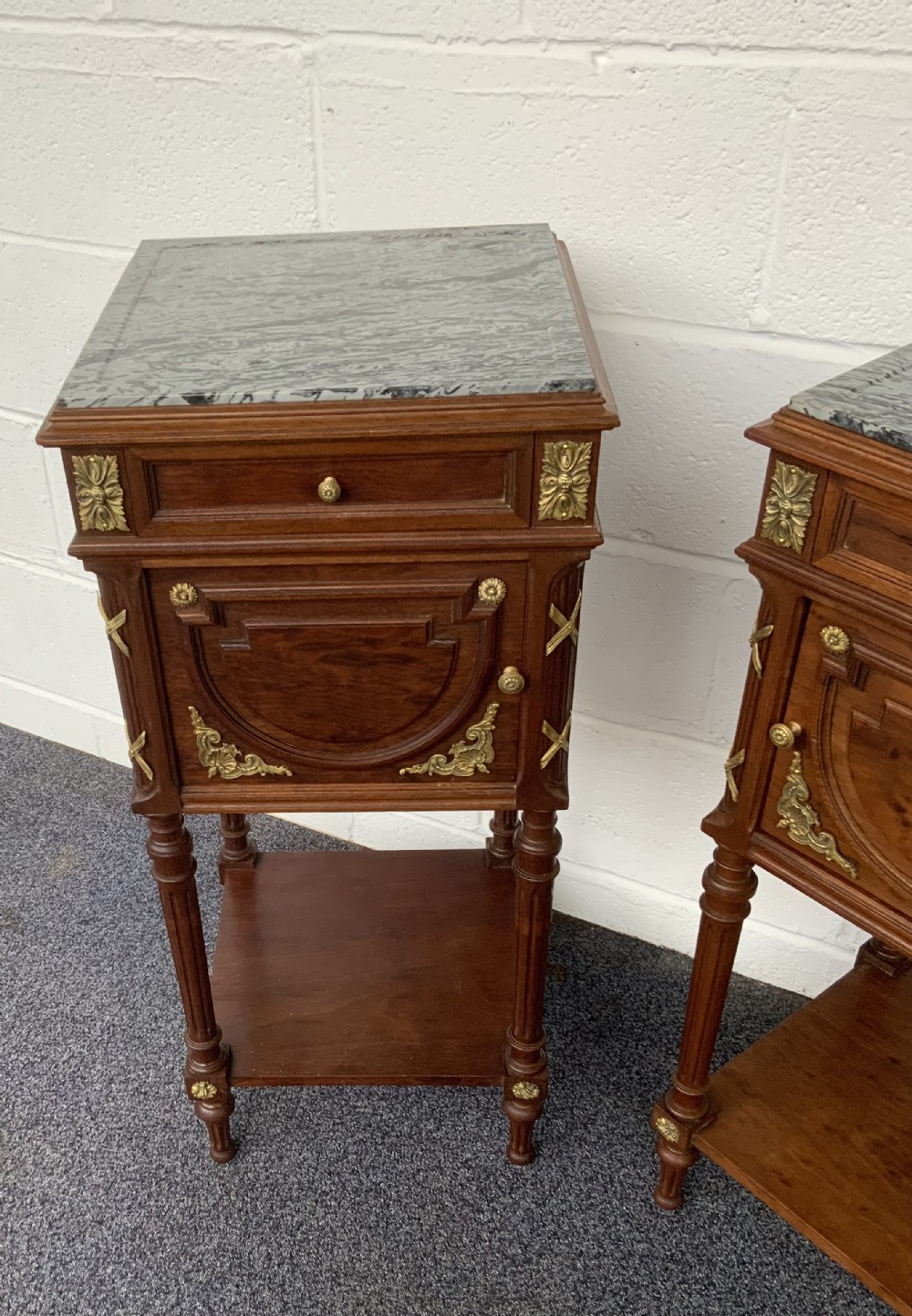 The brass embellishments are of the highest quality and the cabinets retain their original marble tops and internal marble lined cupboards.