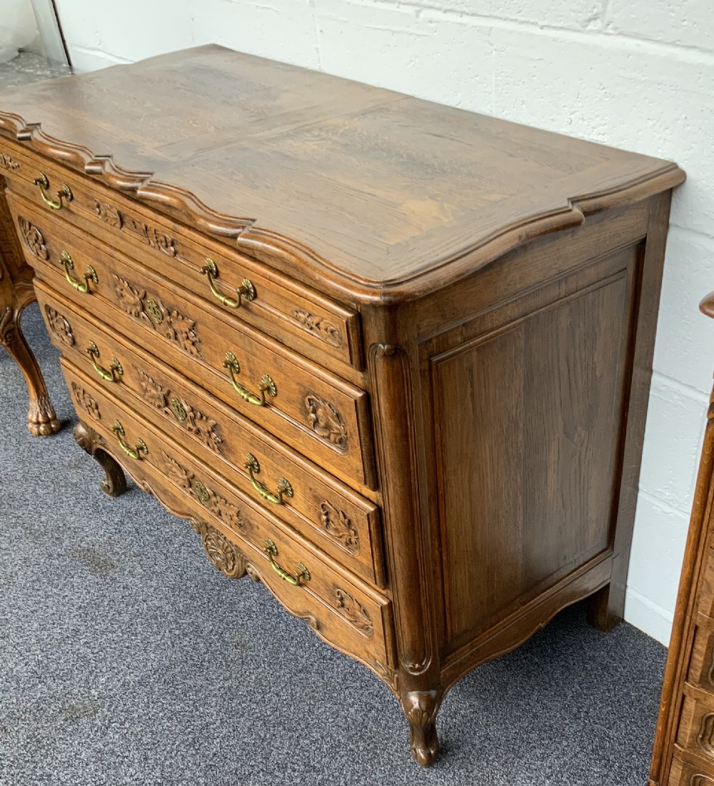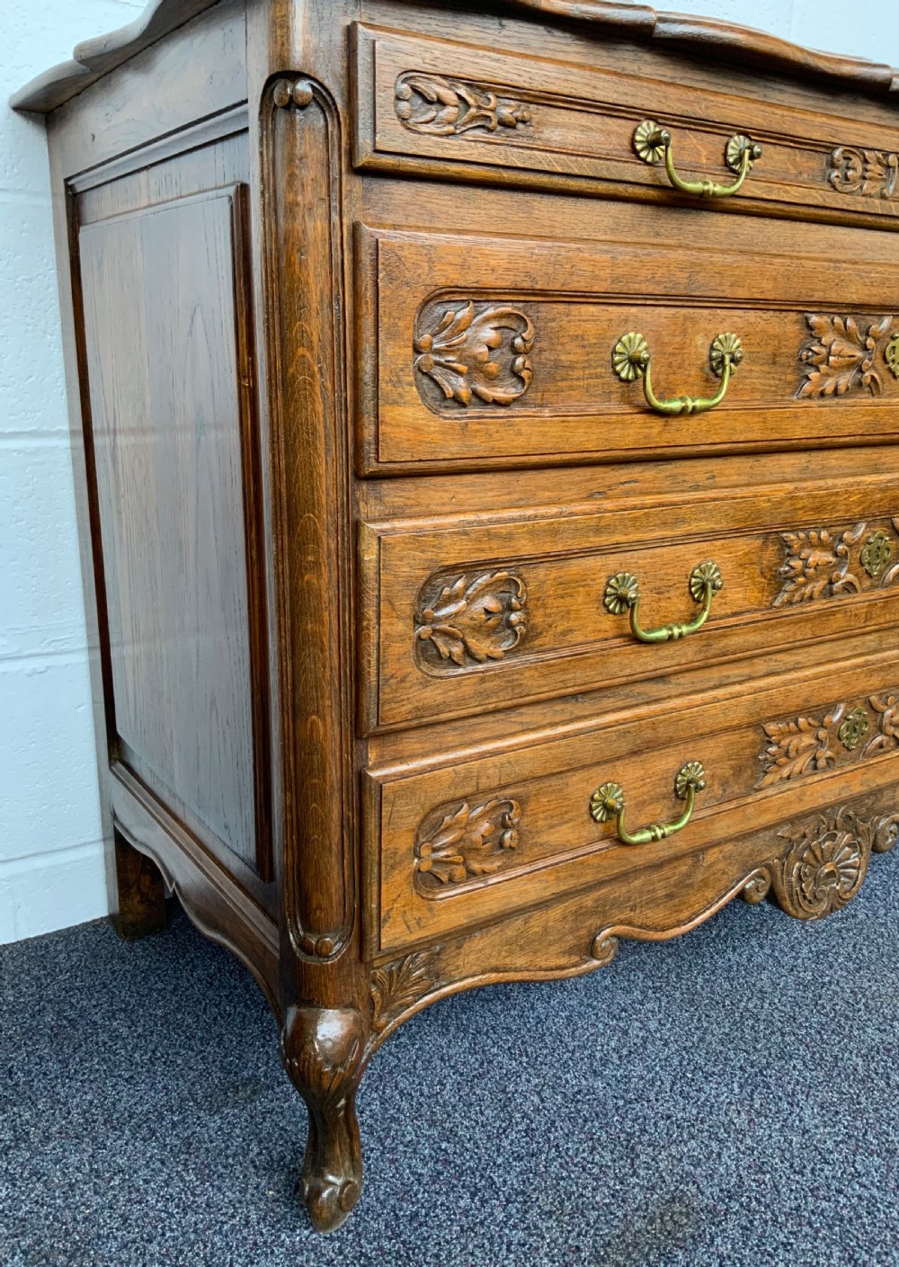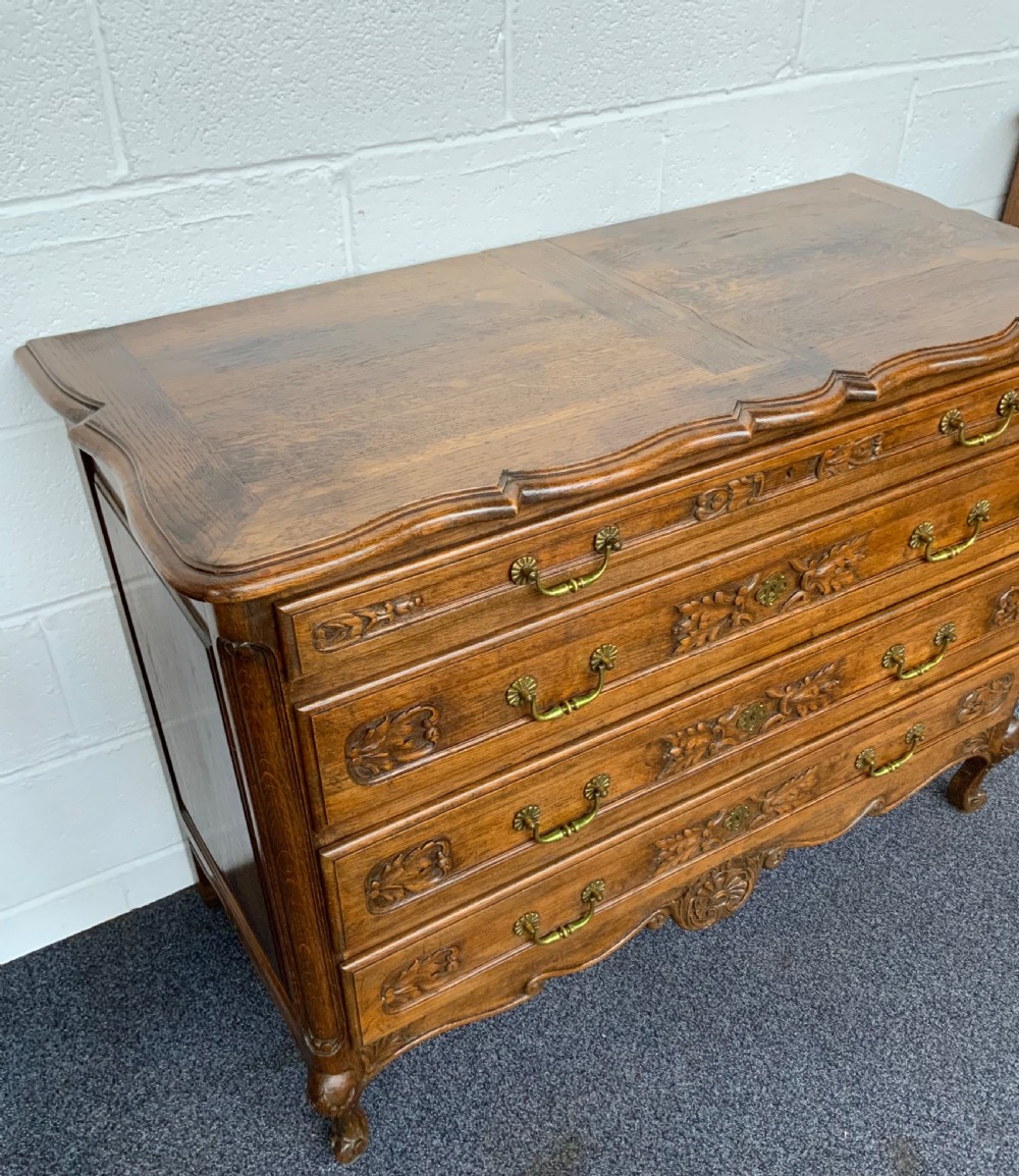 ORNATELY CARVED FRENCH OAK CHEST OF DRAWERS