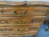 The chest has lovely intricate carving to the drawers and retains its original brass handles.