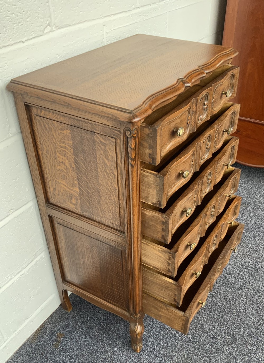 CARVED OAK 6 DRAWER CHEST OF DRAWERS
