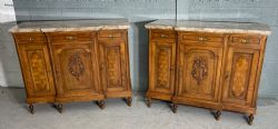 CARVED OAK FRENCH MARBLE TOPPED SIDEBOARD