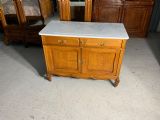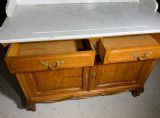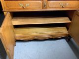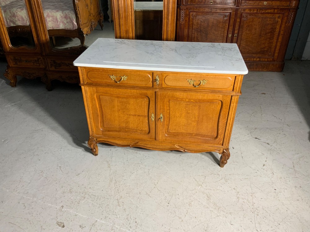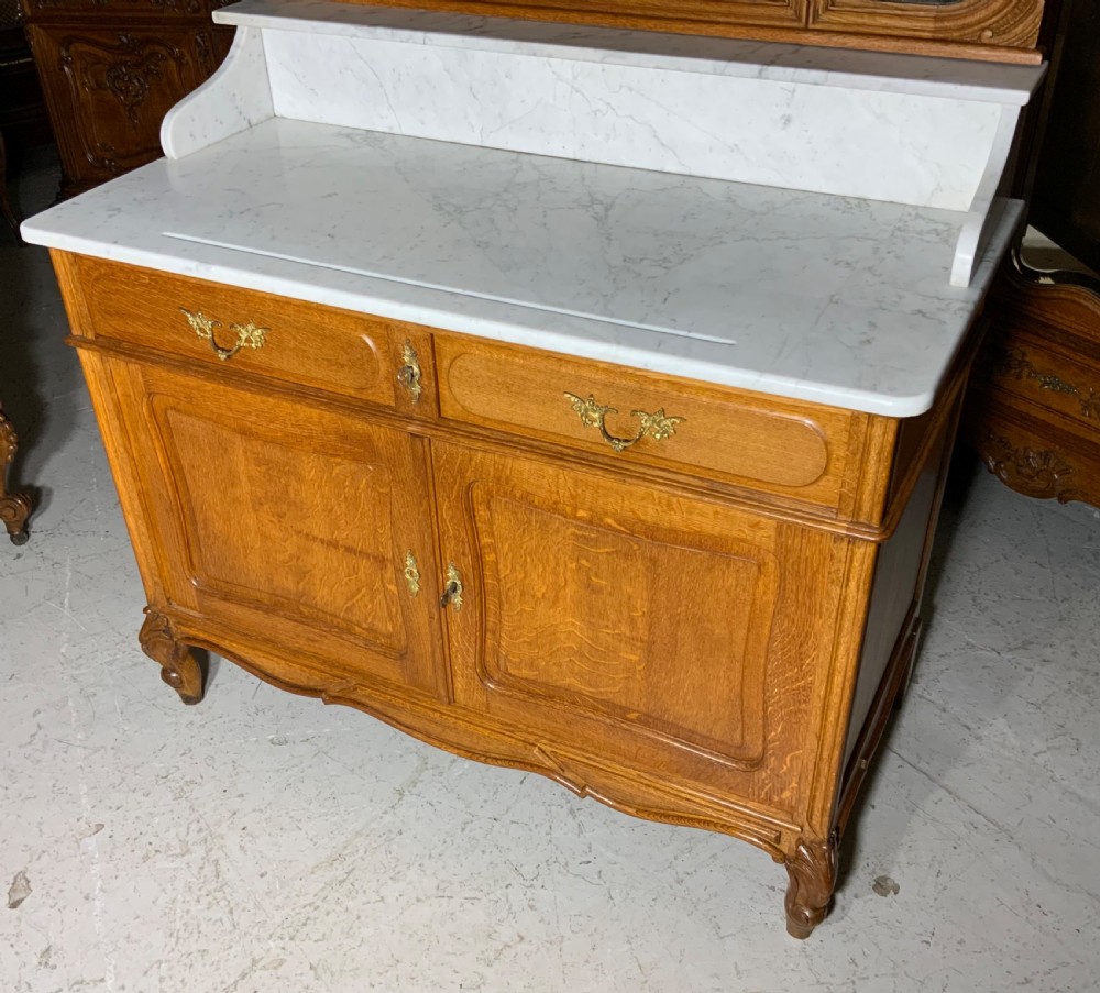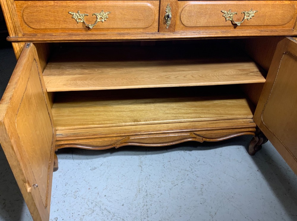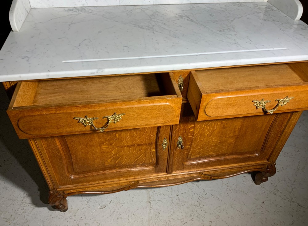 This lovely carved oak french dressing table come washstand is offered in very good condition.