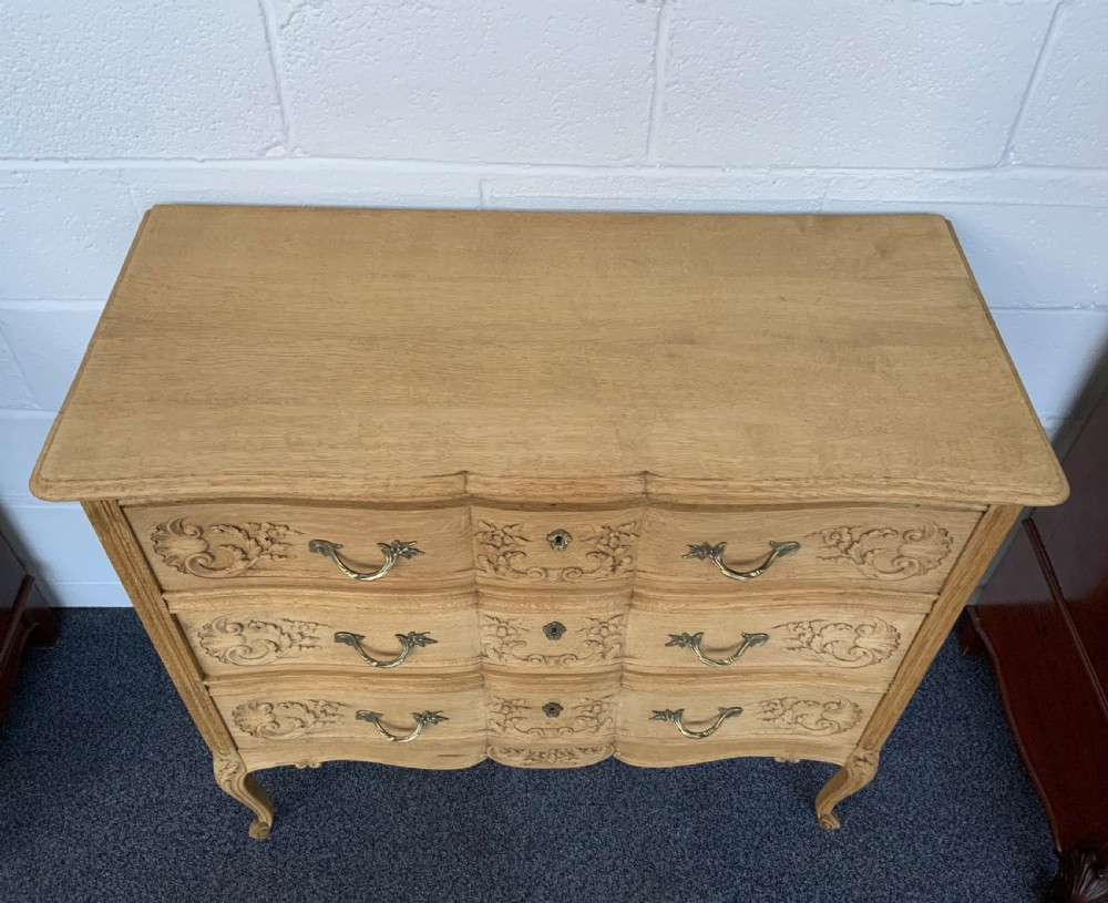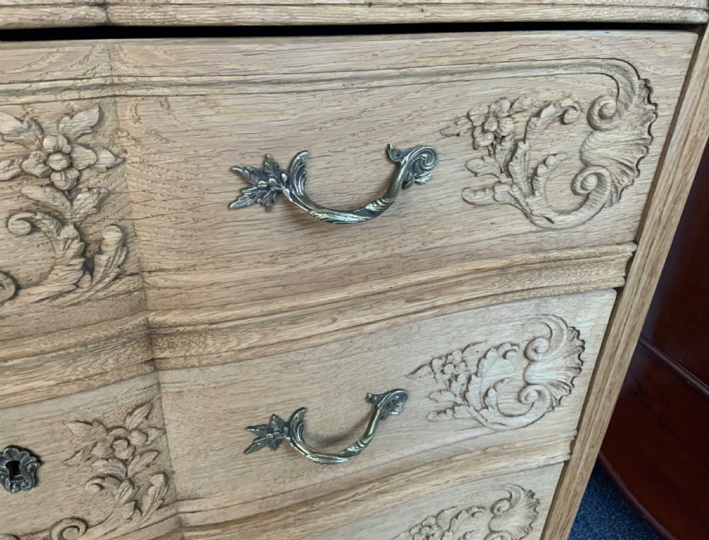 BLEACHED OAK FRENCH CARVED CHEST OF DRAWERS