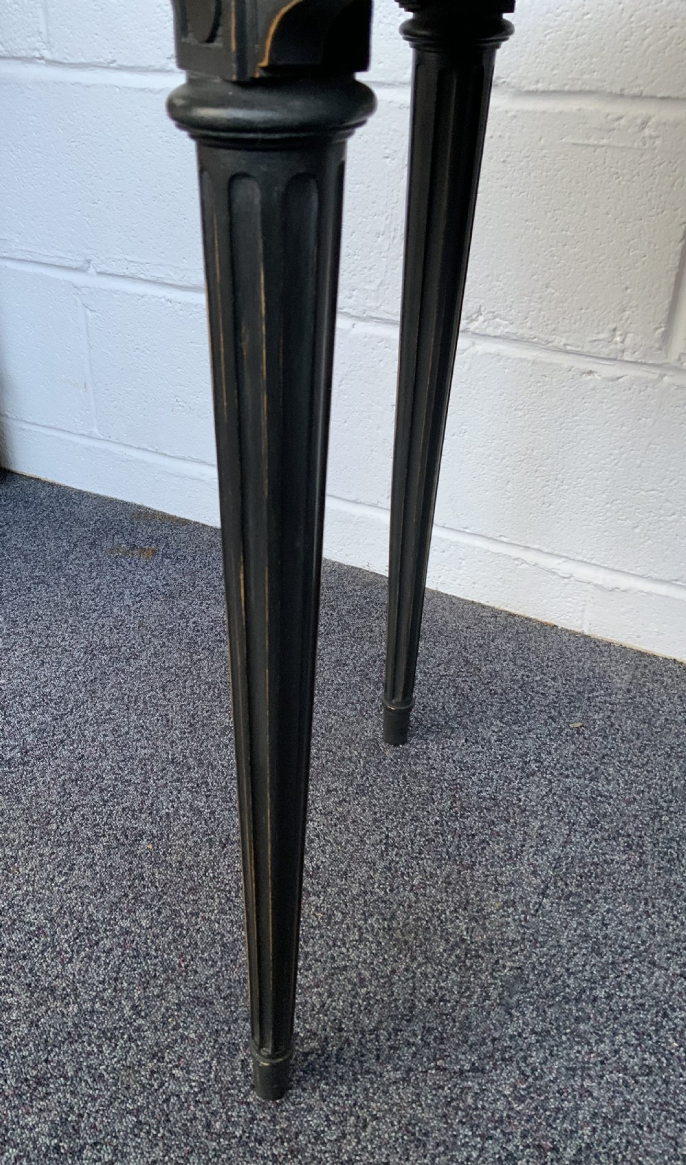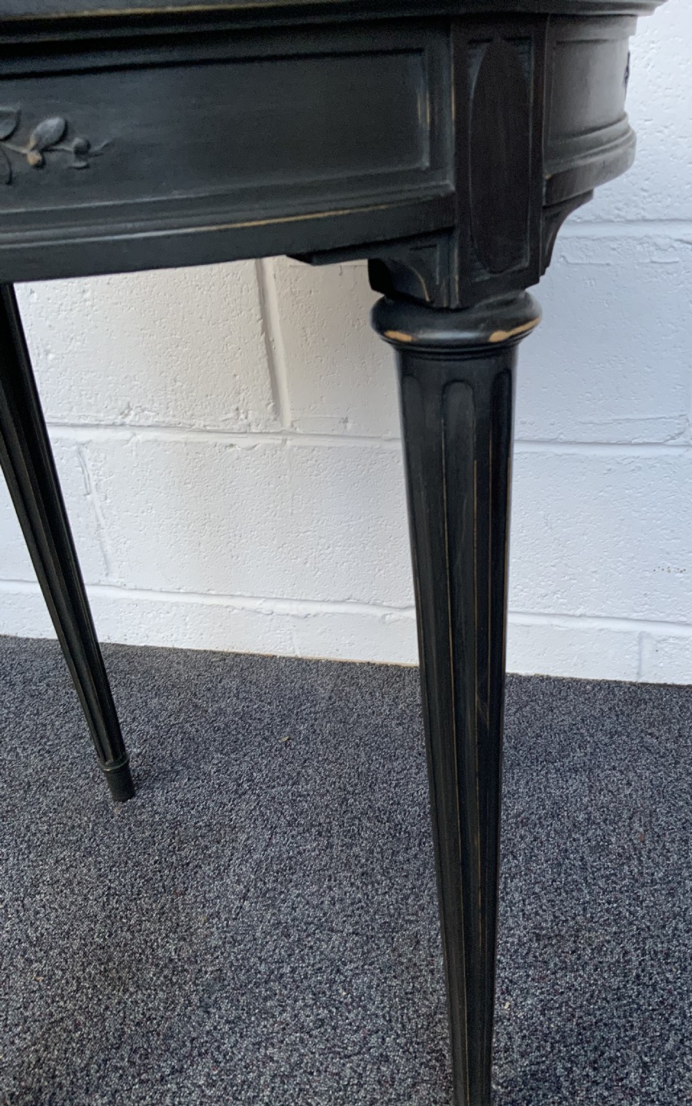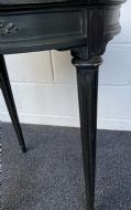 The walnut table has been painted in a farrow and ball Pitch Black, slightly shabbied and given a clear wax finish.