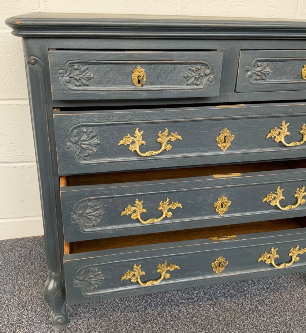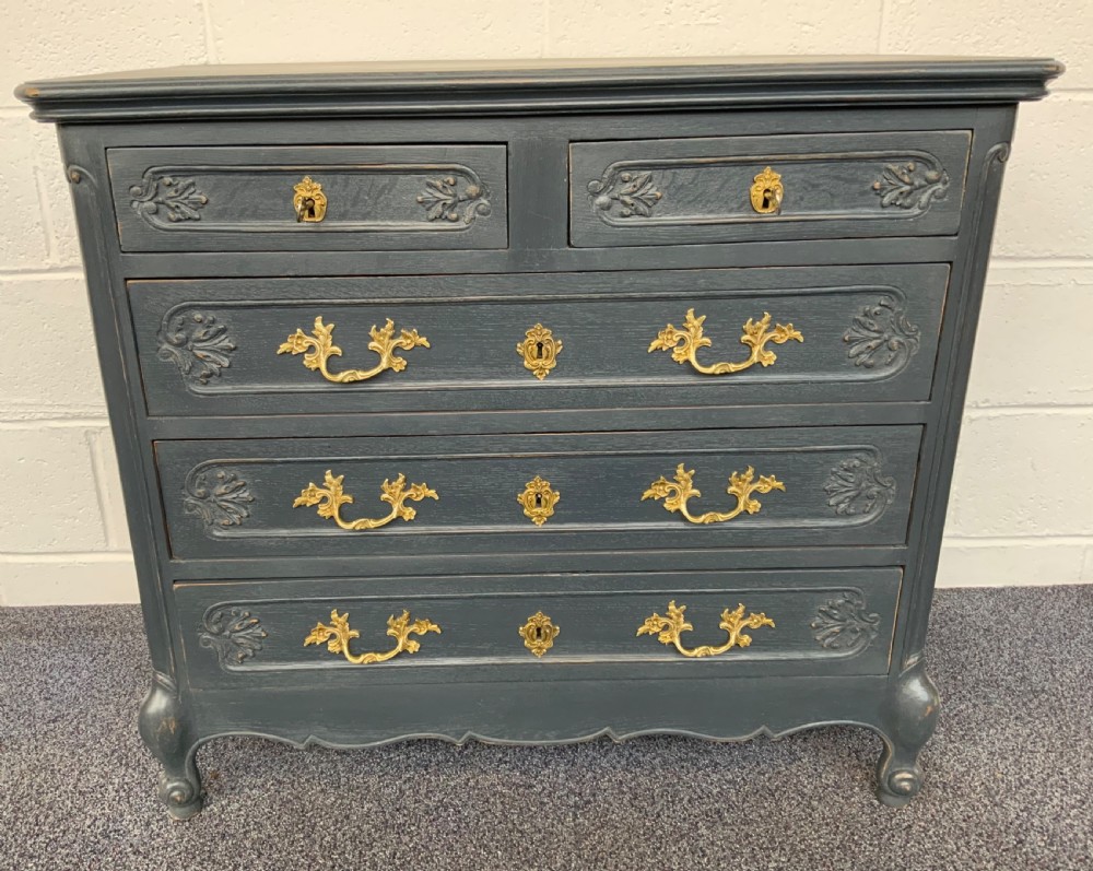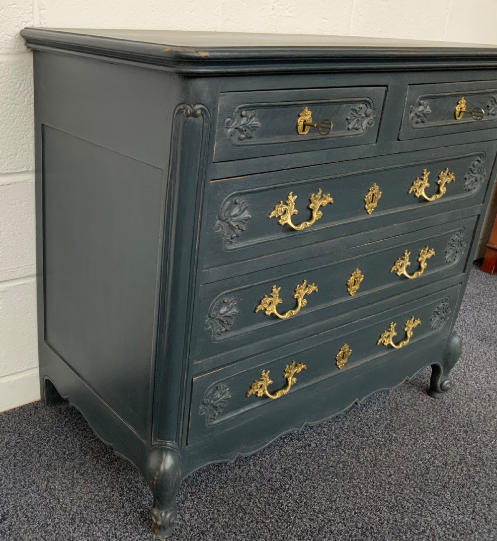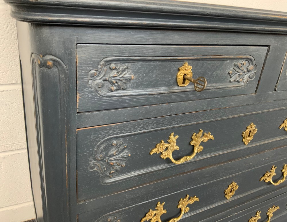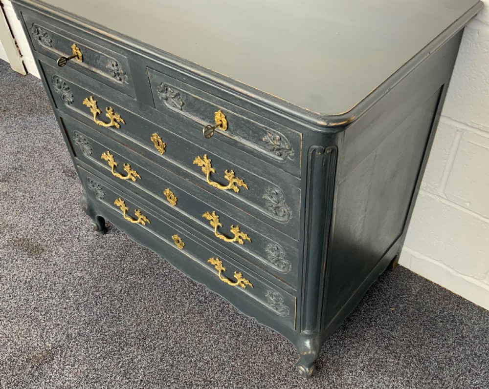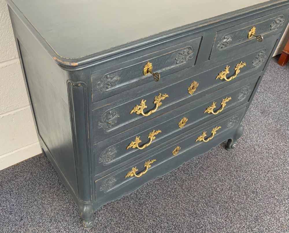 PAINTED FRENCH CARVED OAK CHEST OF DRAWERS