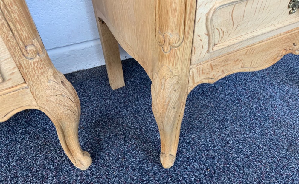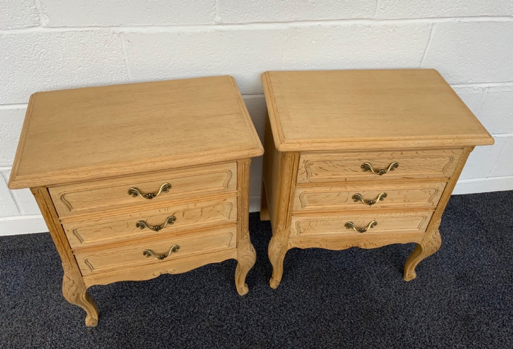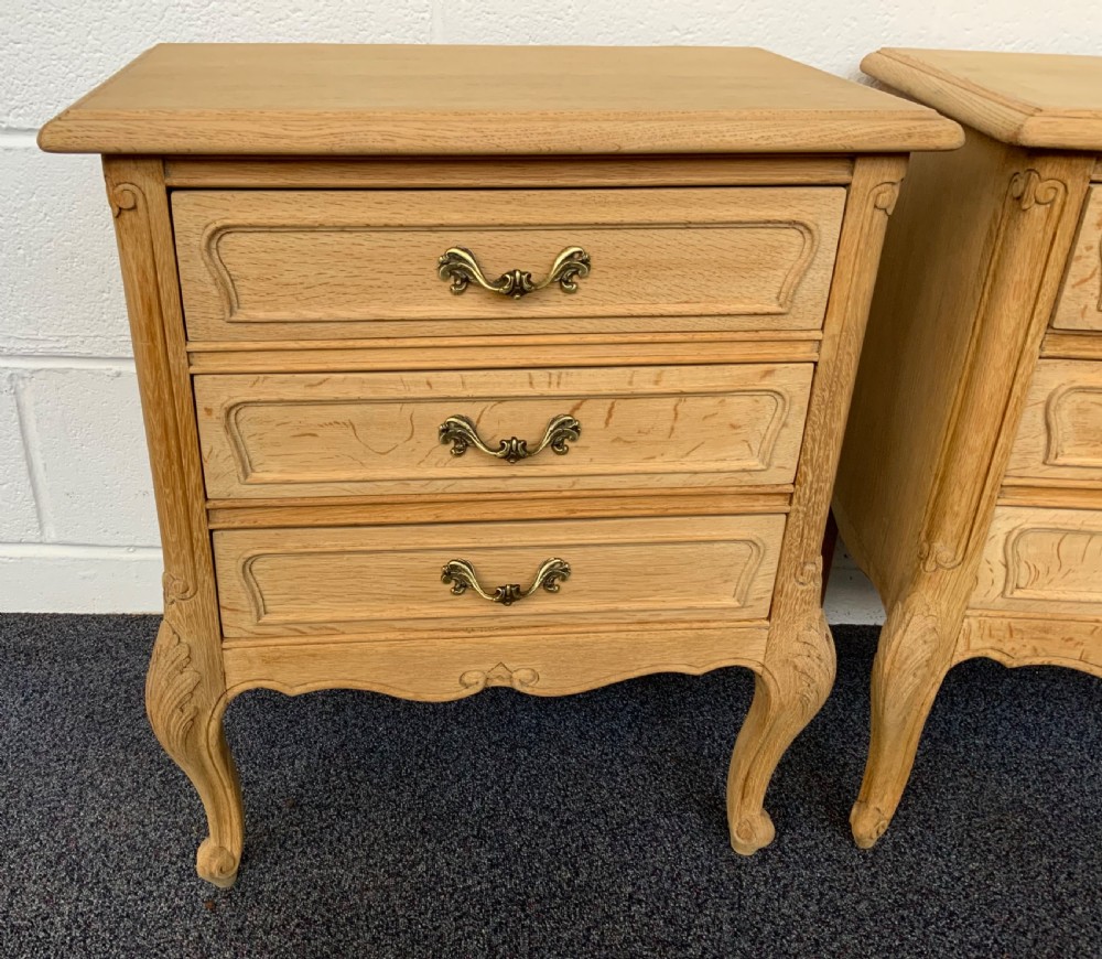 PAIR OF BLEACHED OAK FRENCH BEDSIDE CABINETS