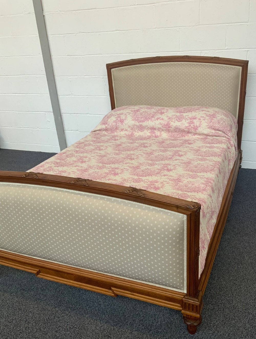 FRENCH WALNUT UPHOLSTERED DOUBLE BED