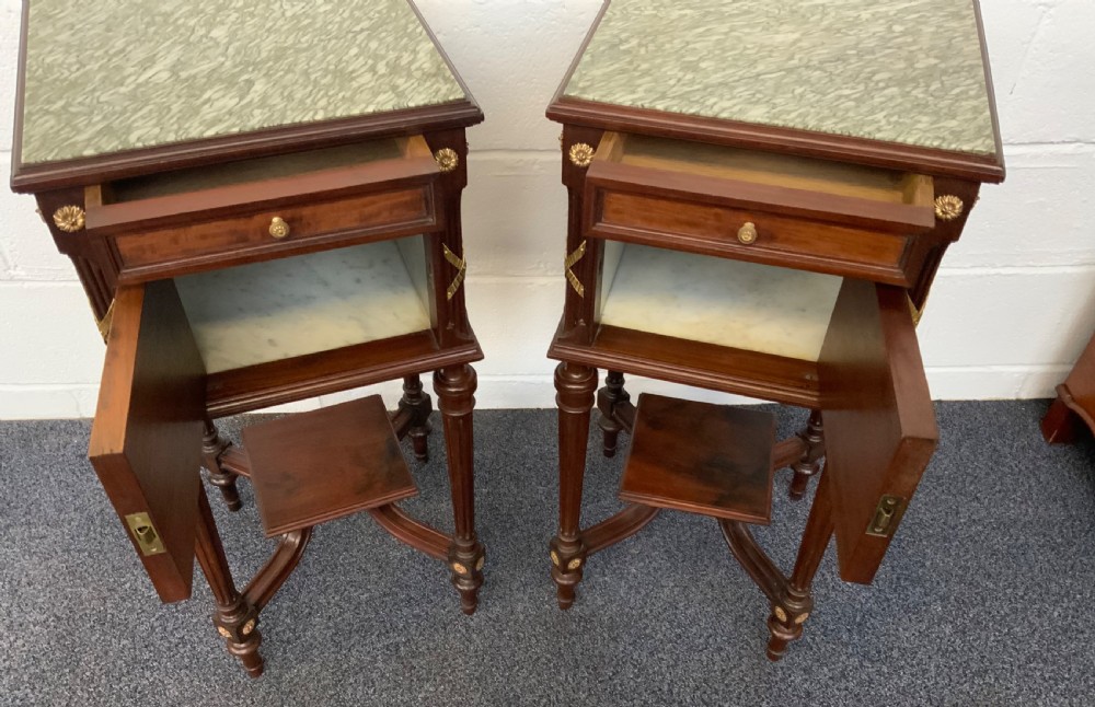 The brass embellishments are of the highest quality and the cabinets retain their original marble tops and internal marble lined cupboards.