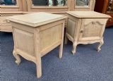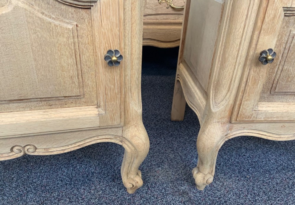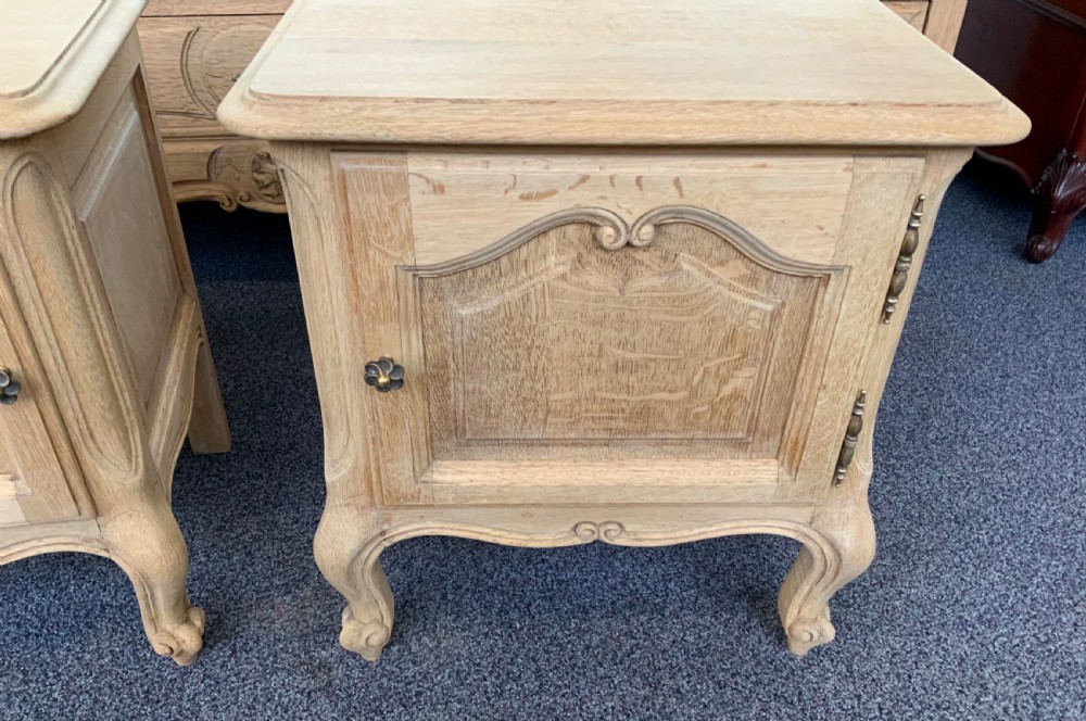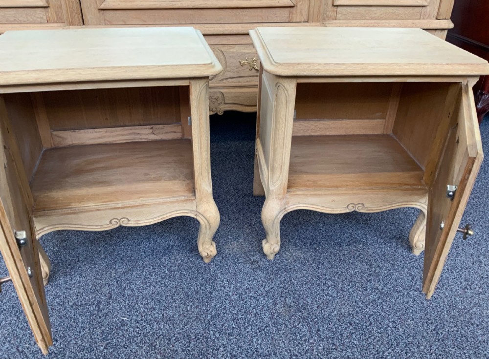 PAIR OF BLEACHED OAK FRENCH BEDSIDE CABINETS