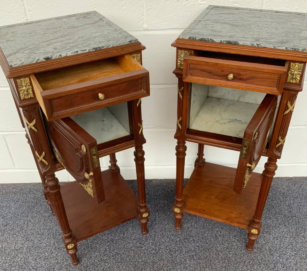 The brass embellishments are of the highest quality and the cabinets retain their original marble tops and internal marble lined cupboards.