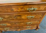 The chest has 4 drawers with brass handles, the chest stands on ornate carved escargot feet.