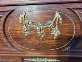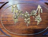 The headboard has a lovely brass centre garland.
