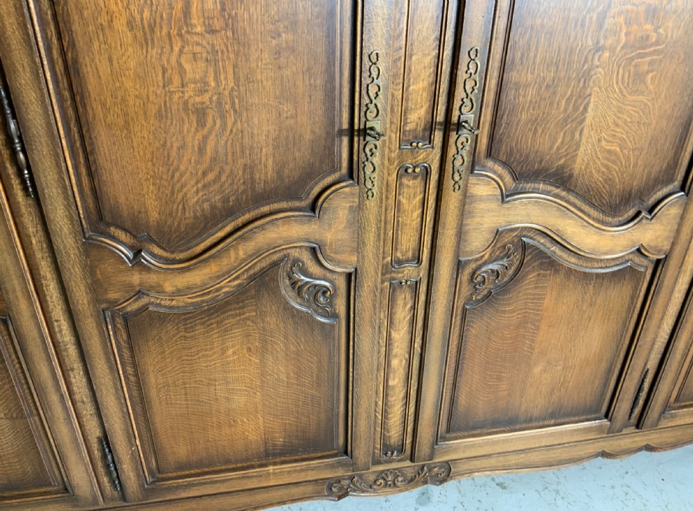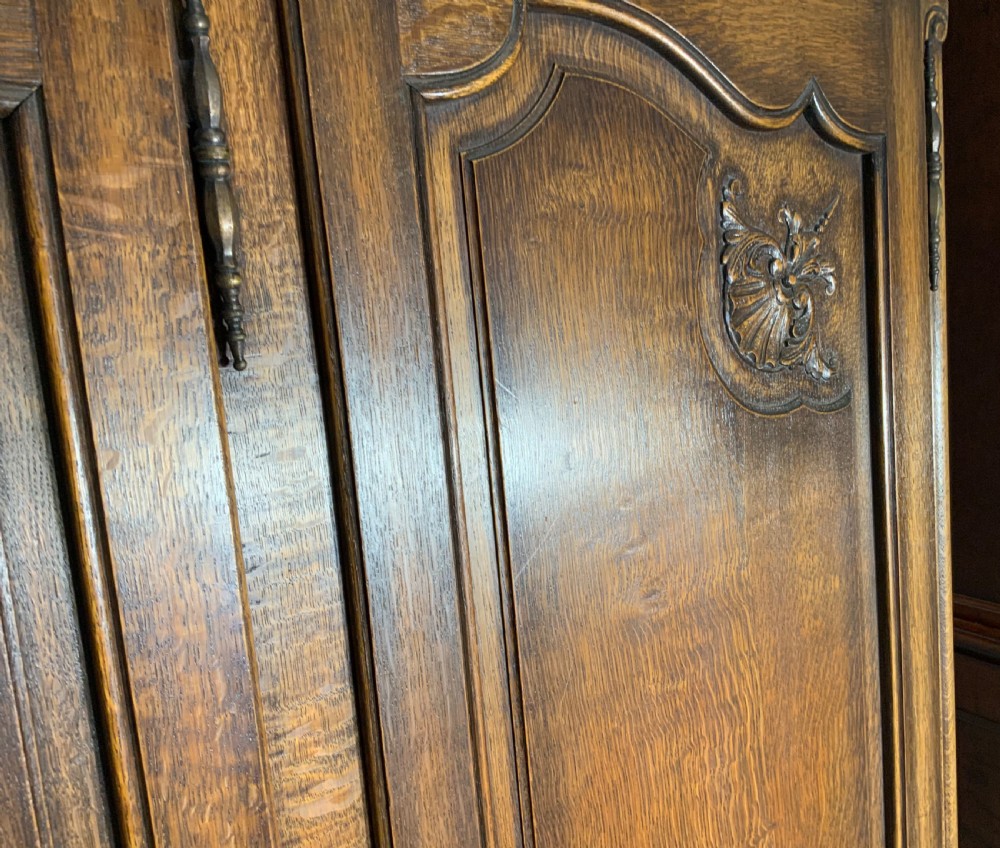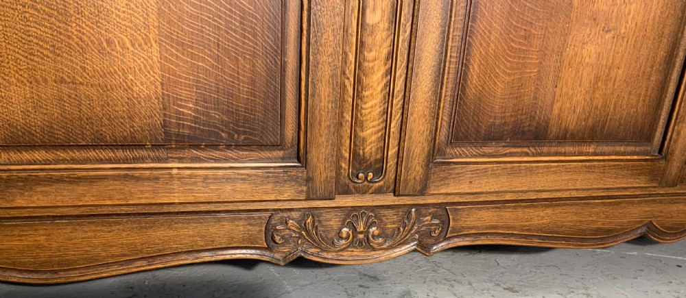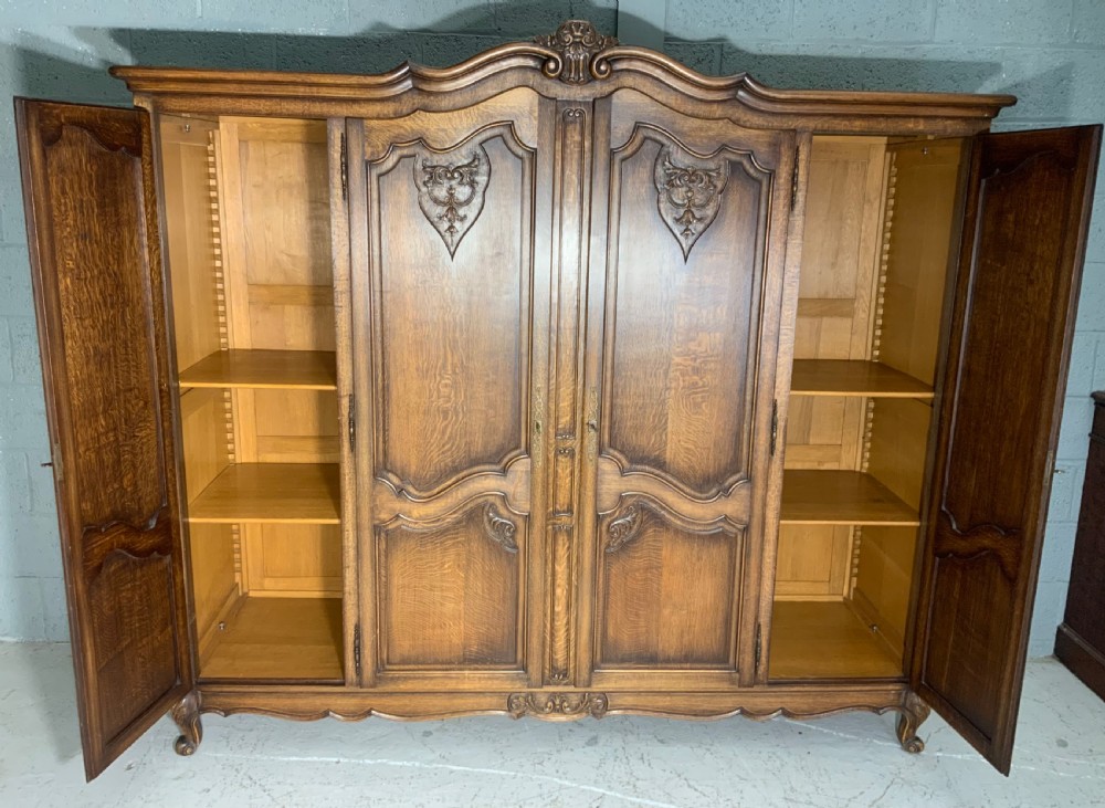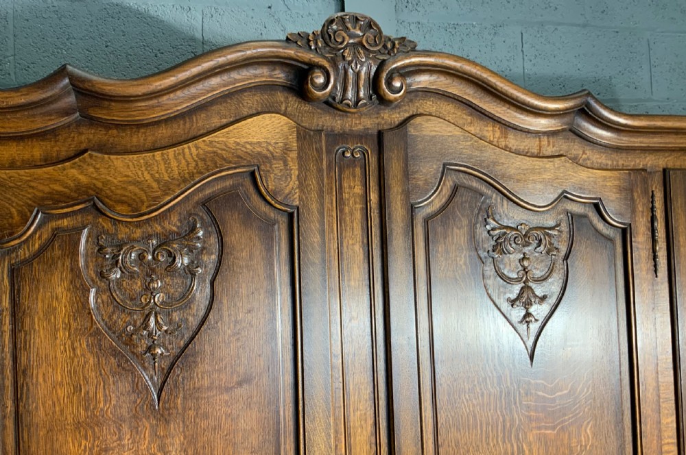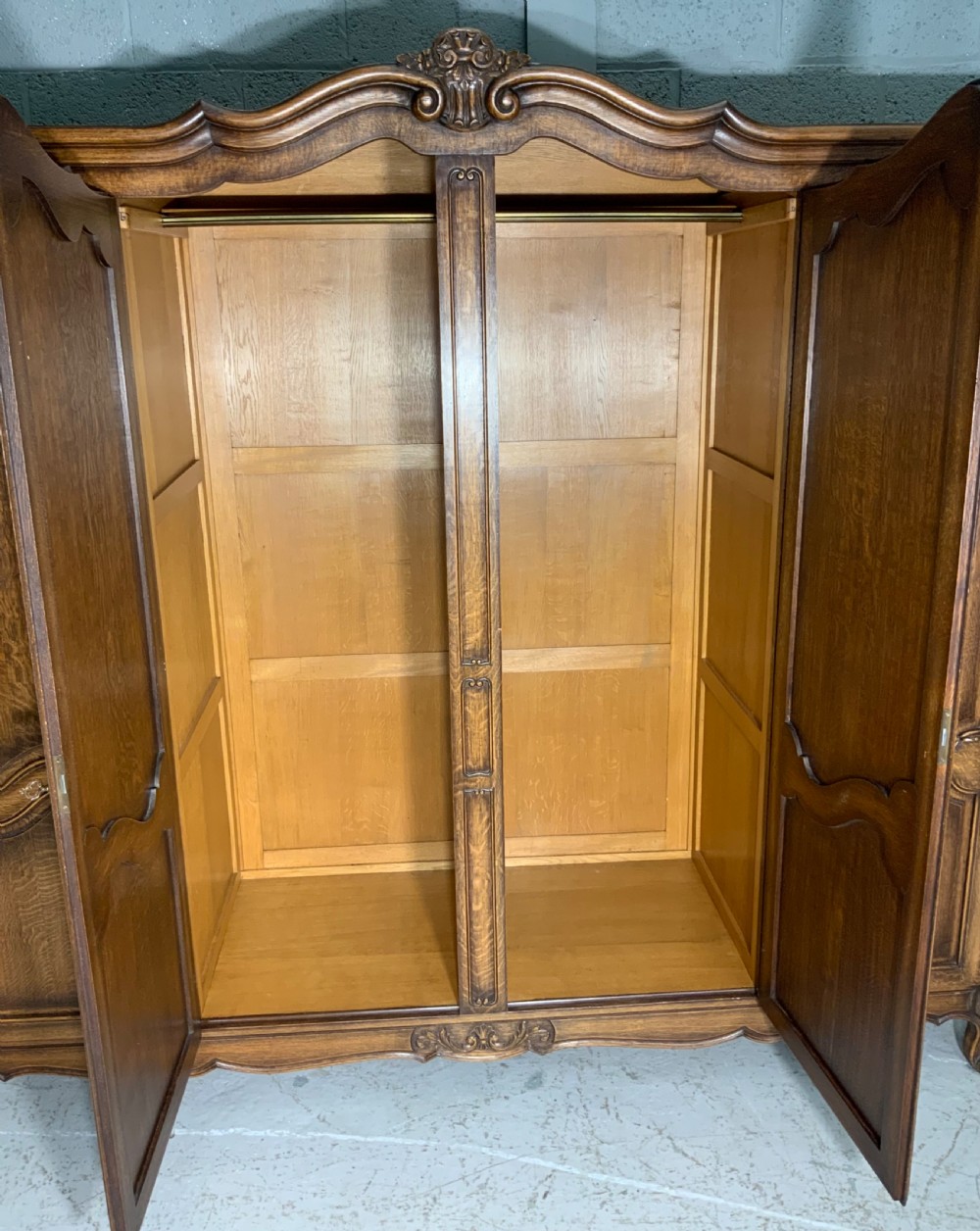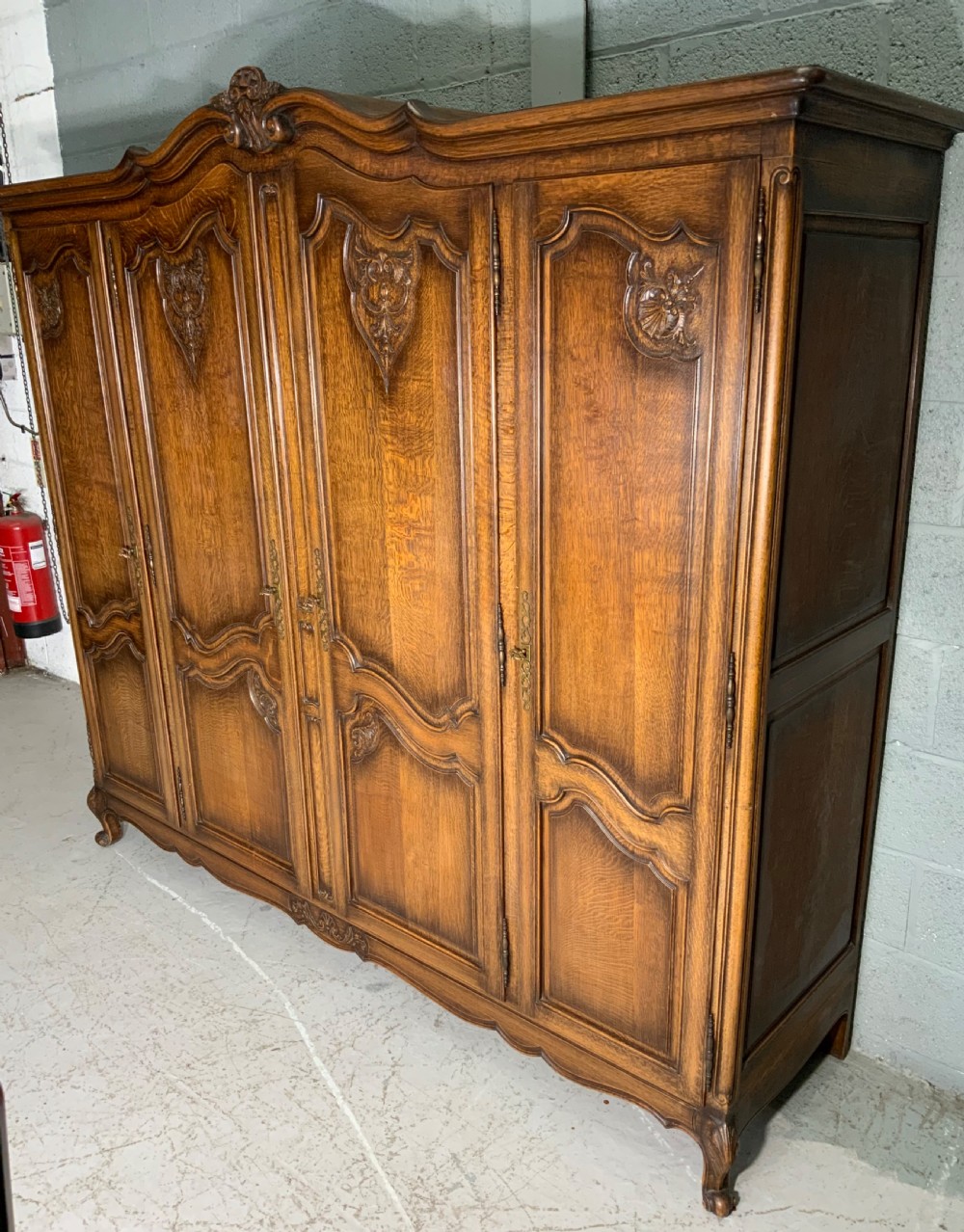 The armoire has 4 carved panelled doors with intricate floral carving.