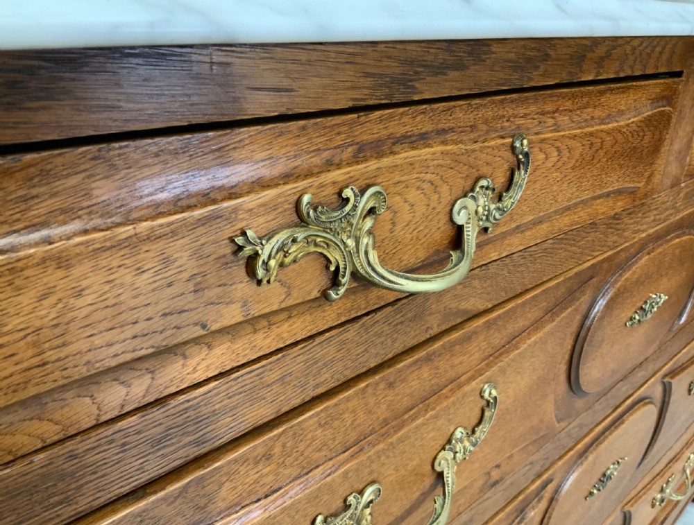 This lovely carved oak french dressing table come washstand is offered in very good condition.