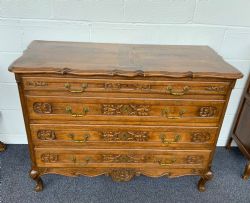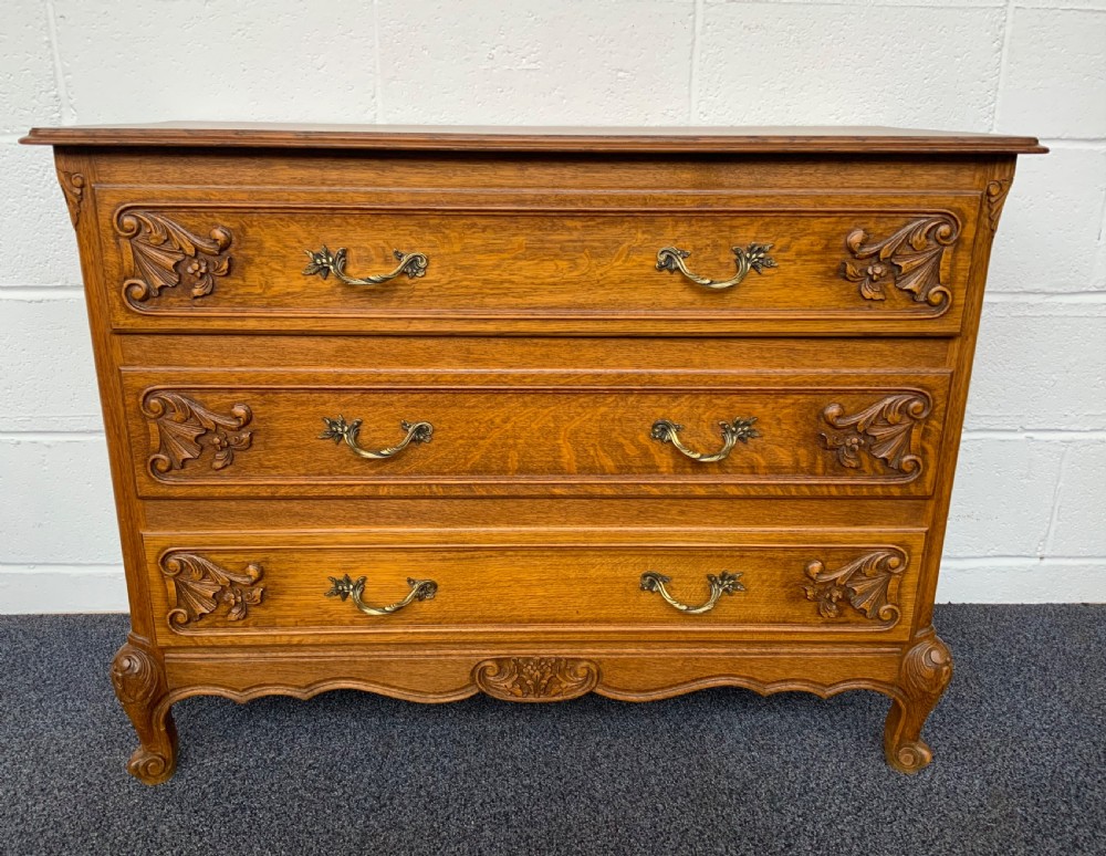CARVED OAK FRENCH CHEST OF DRAWERS