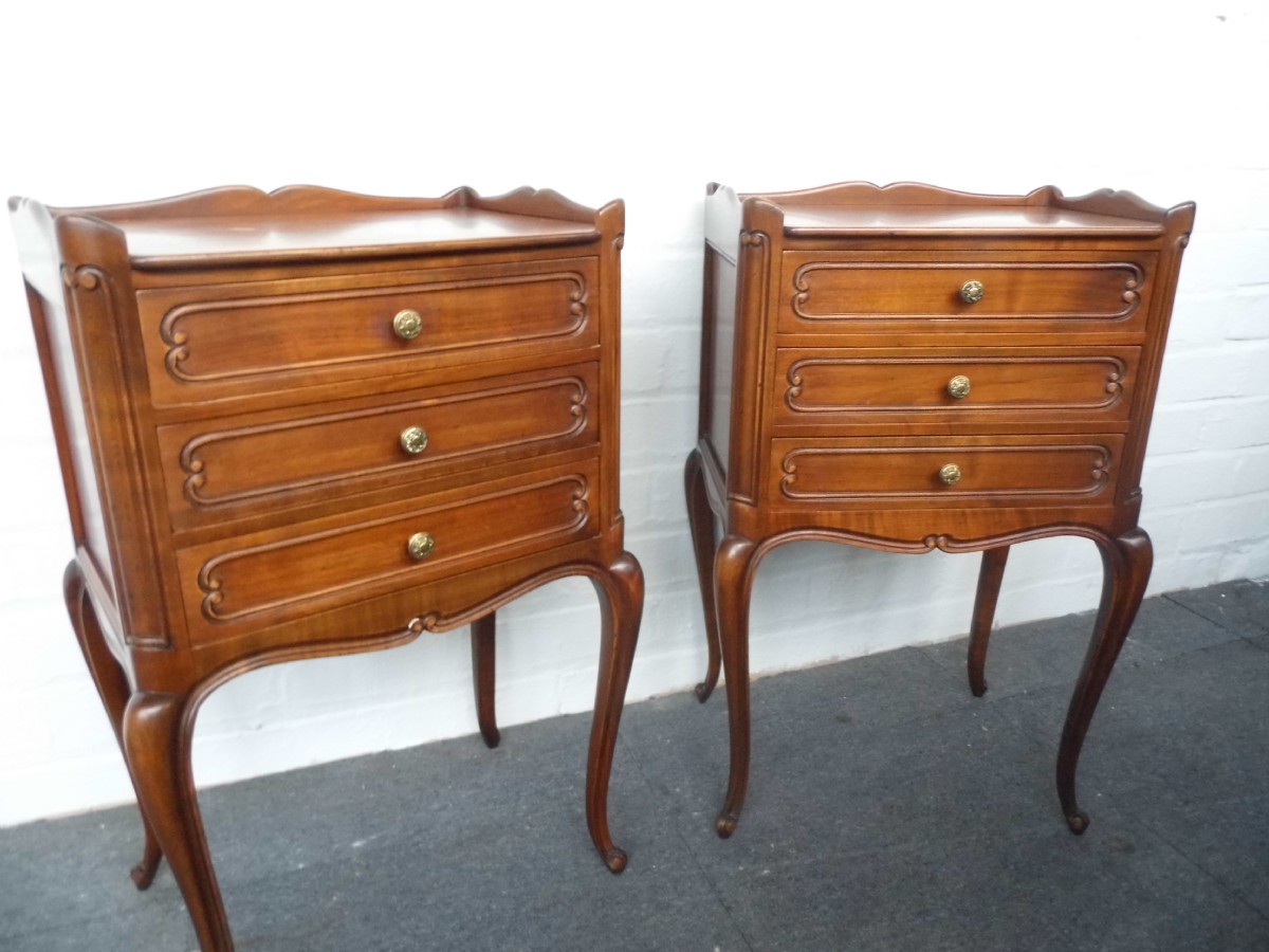 FOR SALE WE HAVE A PAIR OF FRENCH CHERRY WOOD BEDSIDE CABINETS.