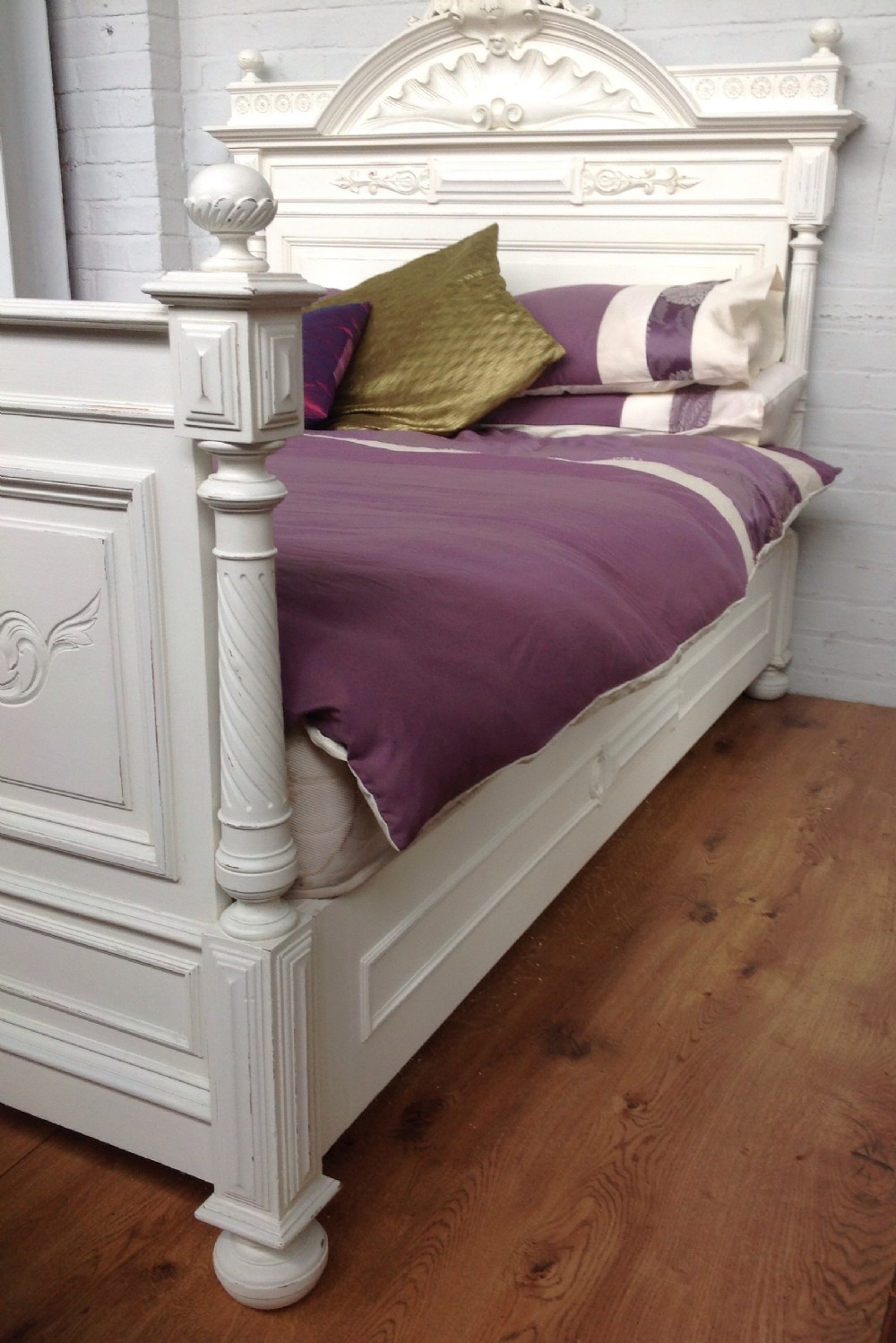 The bed has been painted in a Wimborne White farrow and ball paint, sympathetically shabbied and given a clear wax finish.