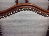 The chairs have been stripped back to the springs and completely reupholstered, they have been covered in a linen and finished with a brass stud work detailing.