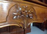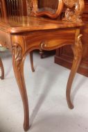 The dressing table has a solid walnut top with a moulded edge, there is a serpentine drawer with floral carving.