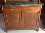 This stunning pair of French oak server sideboards with original green marble tops.