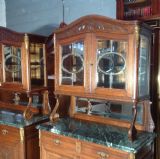 The marble topped bases have two drawers and two carved cupboards.