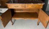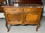 CARVED OAK FRENCH MARBLE TOPPED SIDEBOARD