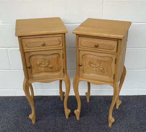 CARVED OAK BLEACHED FRENCH BEDSIDE CABINETS ...
